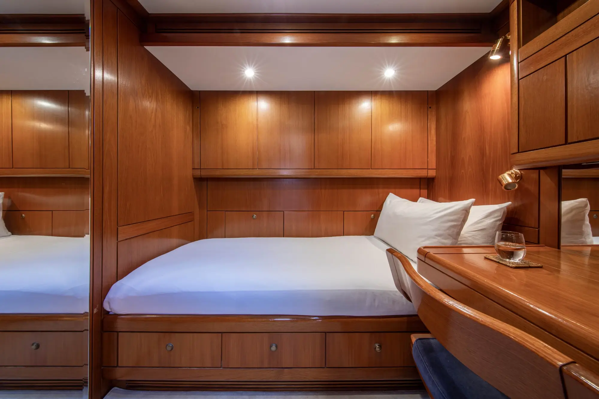 Whether retiring after a day of sailing or enjoying a quiet morning at anchor, each cabin provides a serene, inviting sanctuary for charter guests.
